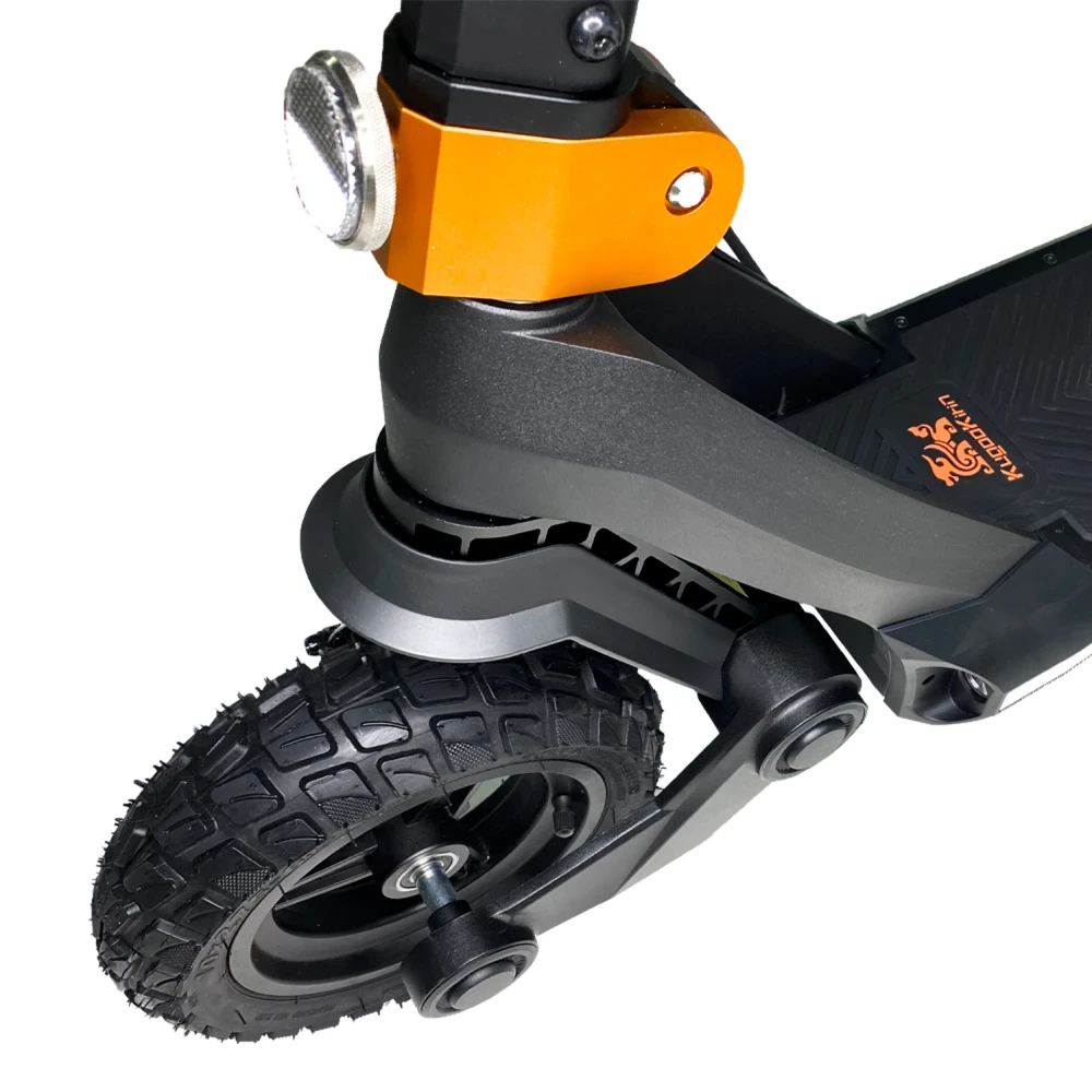 Электросамокат KUGOO G3 также оснащен передними и задними амортизаторами, что обеспечивает отличную амортизацию и комфорт при передвижении по неровным поверхностям. Складная конструкция позволяет удобно транспортировать самокат и хранить его в ограниченном пространстве, а вес в 26.18 кг делает его достаточно легким для переноски.