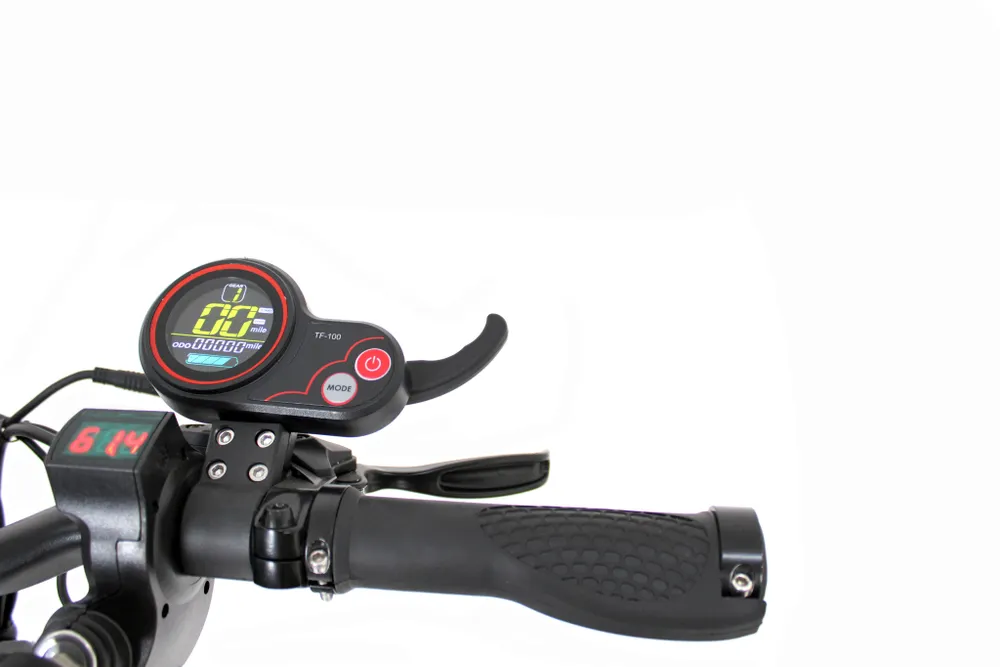 Для удобства управления производитель сделал руль IKINGI G1 pro достаточно широким, и разместил вольтметр справа на руле. Такое продуманное расположение бортового компьютера позволяет райдеру проконтролировать скорость или оставшийся заряд, не отвлекаясь от дороги.