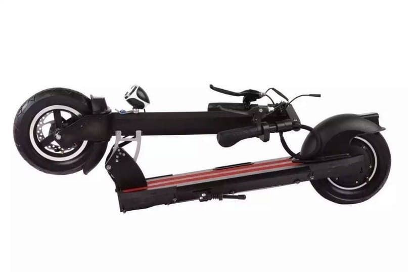 - Колёса у этого электросамоката диаметром 10 дюймов, они широкие и устойчивые