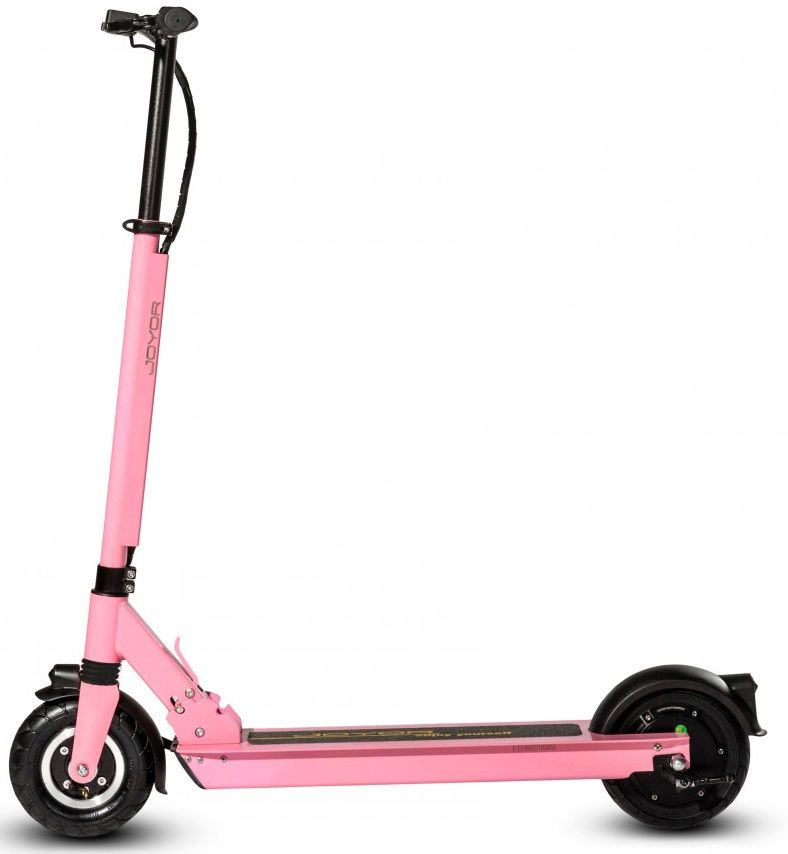 - Электрический складной самокат Joyor F3 имеет переднюю подвеску с амортизатором, а так же передние и задние фонари, управляемые при помощи ЖК-дисплея.