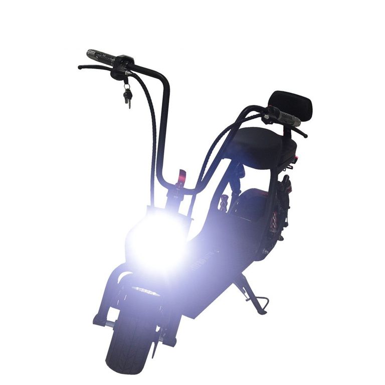 За скорость 60 км/ч отвечает 800 Вт мотор. При необходимости остановиться или сбавить разгон, нажмите на тормозной курок. У электроскутера minipro mi716 тормоз задний дисковый. На одном заряде скутер проедет до 55 километров, благодаря батарее 16 Ач. Чтобы зарядить аккумулятор, понадобится 7 часов.