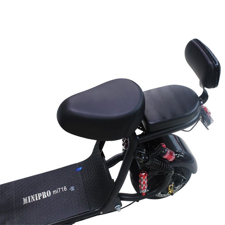 Одна из особенностей этого скутера — широкие 10-дюймовые колеса. Они обеспечивают нужную устойчивость на бездорожье и дополняют амортизаторы, «отскакивая» от препятствий на дороге. Пружины под сиденьями электроскутера minipro mi716 особенно пригодятся во время езды по неровностям. Выбирая эту модель не сомневайтесь, что любая поездка будет комфортной.