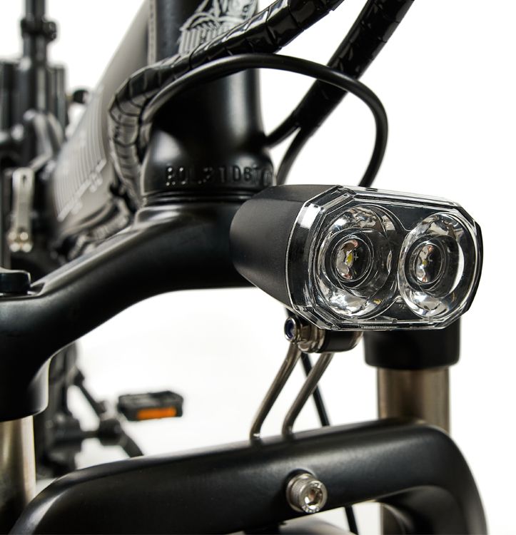 Установленная панель управления позволяет включать/выключать электровелосипед, выбирать режим помощника (PAS), следить за зарядом батареи и управлять освещением.
