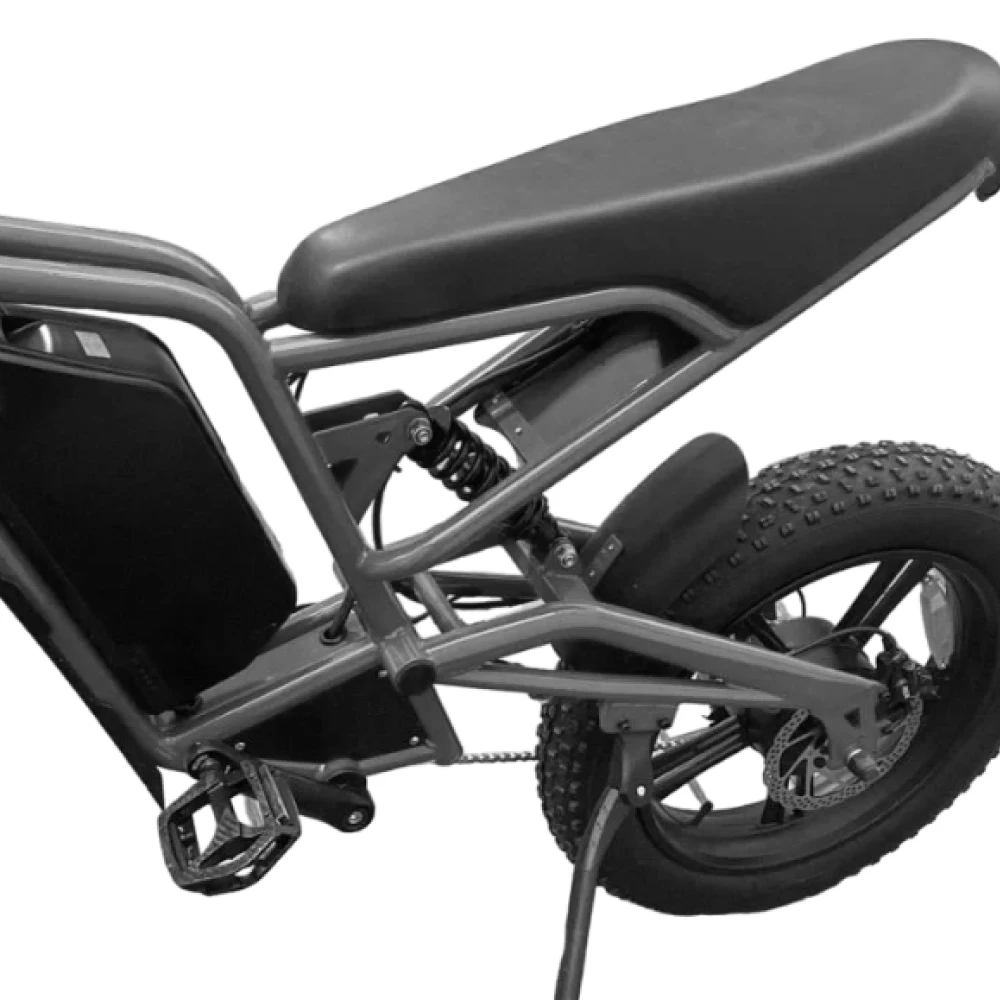 Электровелосипед оснащен гидравлическими тормозами как спереди, так и сзади, что обеспечивает безопасное и эффективное торможение в любых условиях. Диаметр колес составляет 20 дюймов с шириной 4.0 дюйма, что способствует отличному сцеплению с дорогой и комфорту во время поездки, а также позволяет легко преодолевать неровности.